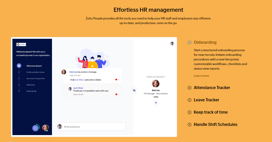 The world of work is changing rapidly and so should your HR practices. Zoho People is a cloud-based HR software crafted to nurture employees, quickly adapt to changes, and make HR management agile and effective. Simplify your HR operations, retain talent, and build a high-performing workforce while putting employee experience first.